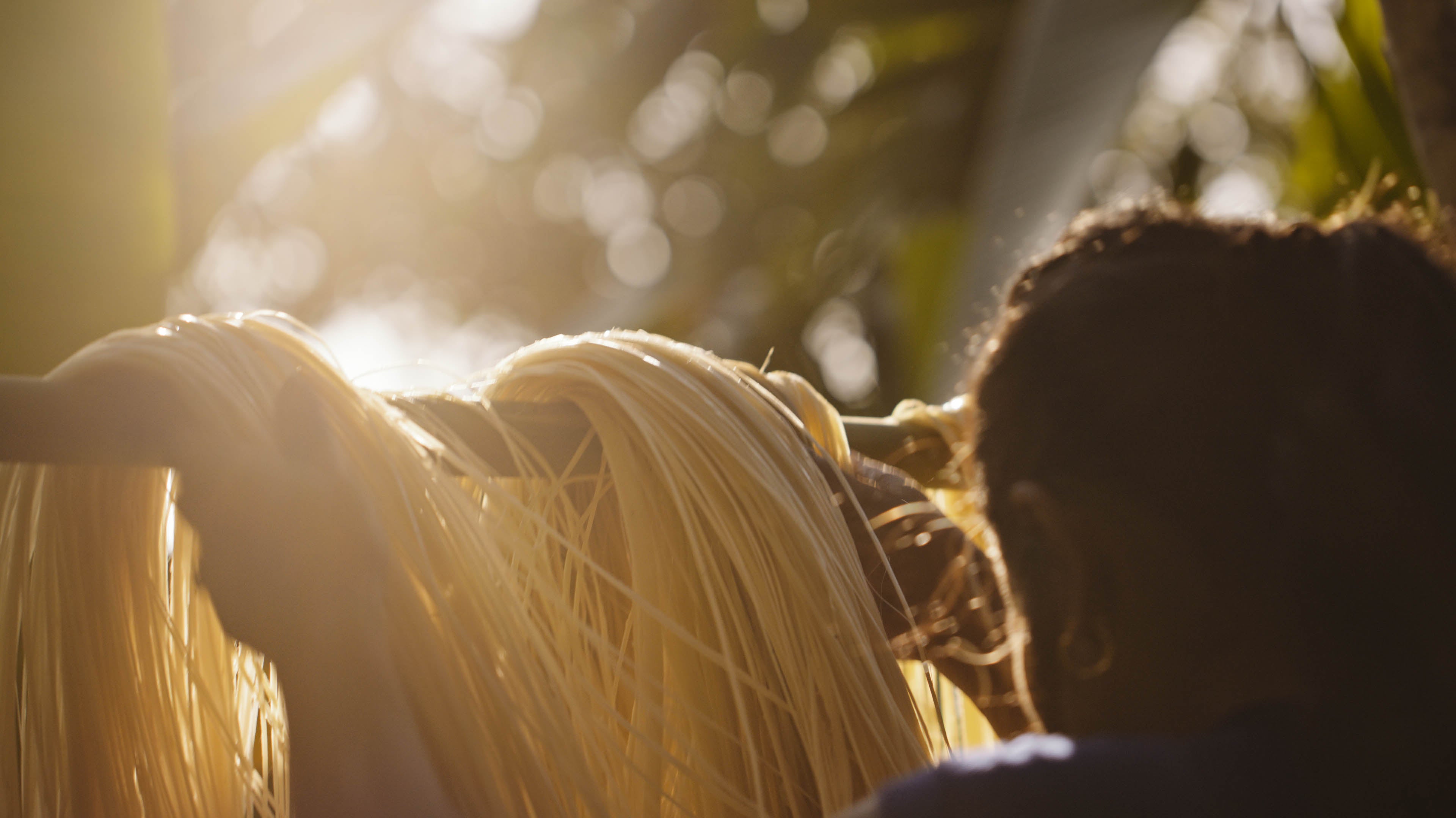 Stripped abacá fibers hung out to air dry.