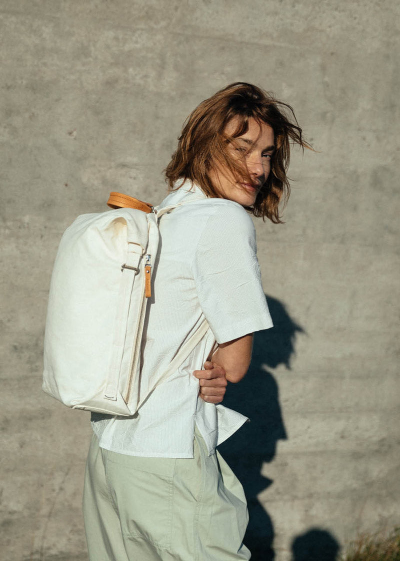 All materials used, including the abacá fibre fabric Bananatex®, enable a 100% biodegrading process at an industrial compost when being shredded at the end of its lifetime.