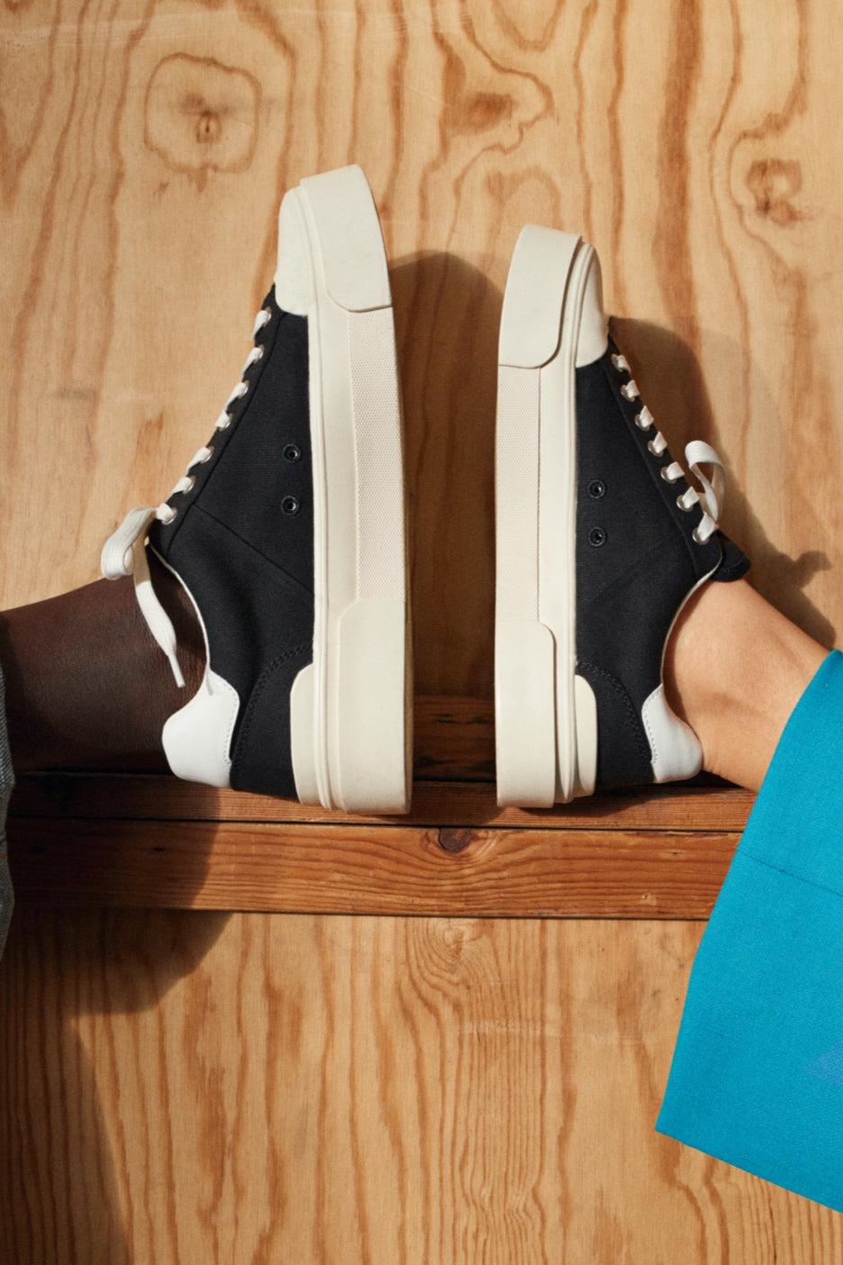 We’ve joined forces with the London based footwear brand Good News on H&M’s first ever shoe collaboration featuring innovative materials. Known for their playful and retro-inspired sneakers, Good News is continuously exploring new, innovative materials for their shoes and share our commitment to sustainability.